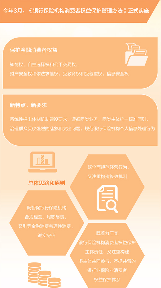 业内人士表示,《管理办法》既全面规范经营行为,又注重构建长效机制,要求银行保险机构建立完善消保审查、信息披露、适当性管理、个人信息保护、合作机构管控、消保内部考核和审计等工作机制,构筑全方位的消费者权益保护工作体系。同时,在保护消费者知情权、自主选择权和公平交易权,保护消费者财产安全权和依法求偿权等方面,作出一系列具体规定,有利于更全面地保障金融消费者合法权益。